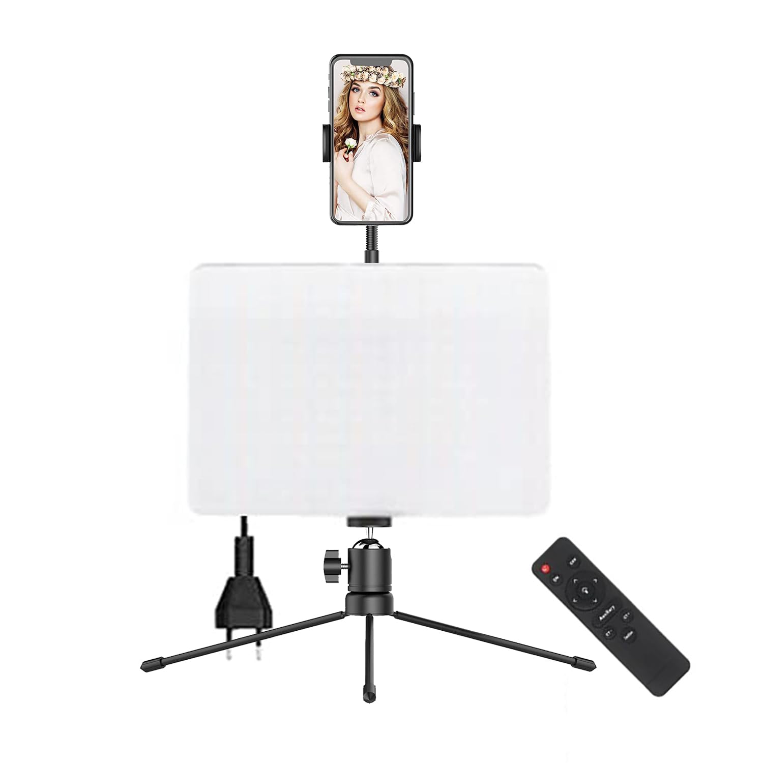 ADZOY Mini Desk Tripod Combo of 7" Height and 10" Panel Light Kit (6 Light Modes) with Mobile Hoder for Conference/Baking/Craft/Calligraphy| Touch Key | PL-26 | Remote Control | Continues Light