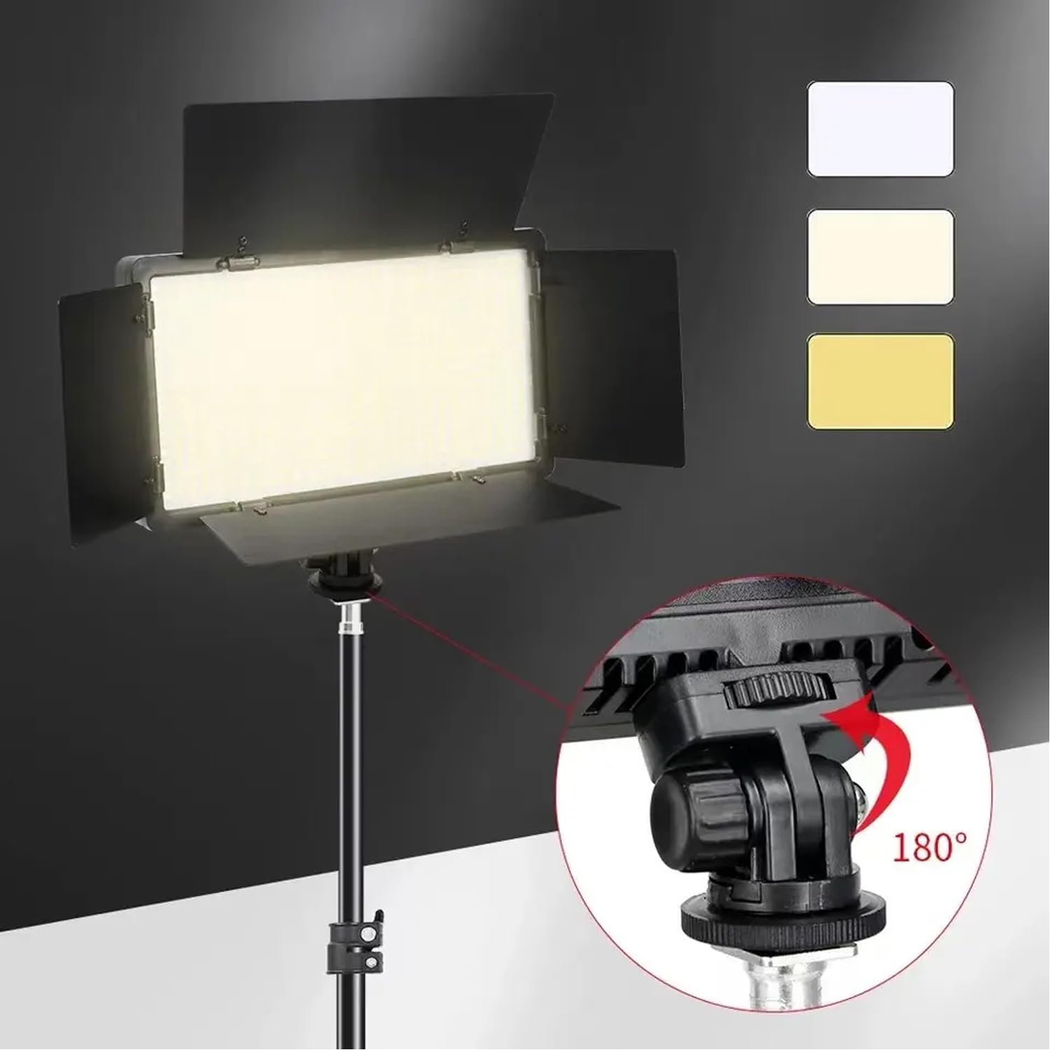 ADZOY Photography Lighting Bi-Color 40W (600 LED) with Barn Door 10" Panel LED Video Light, Bluetooth Remote, 7 Feet Adjutable Metal Tripod and Super Clamp, Light for Video/Photo/Live Streaming