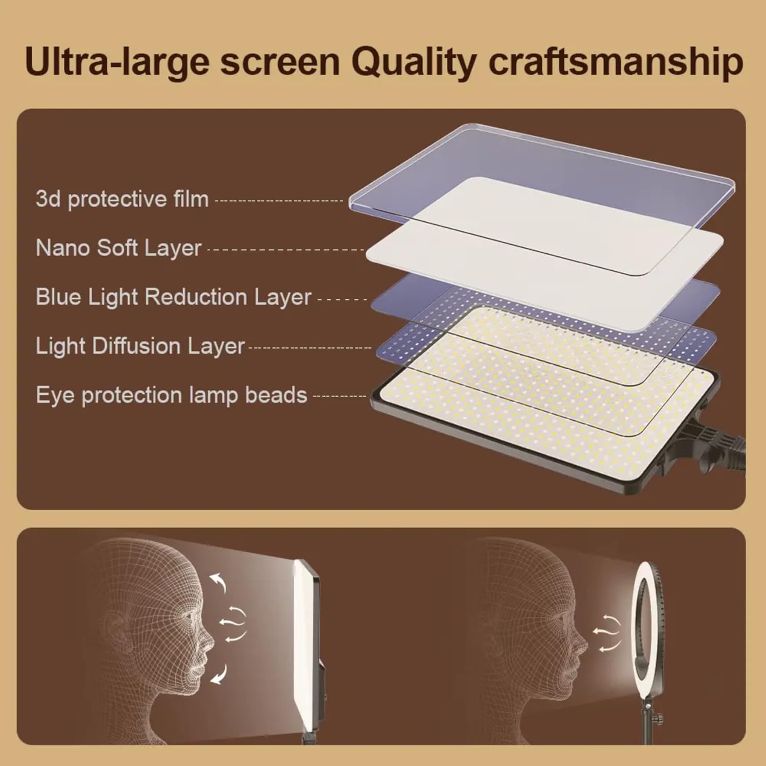- 📸 【Super Bright LED Light】24 inch ultra-thin borderless large light screen, 360 degree three-dimensional uniform light. Make the facial features clear and three-dimensional, with no dead corners in lighting, high CRI of 97+ for precise color rendering.