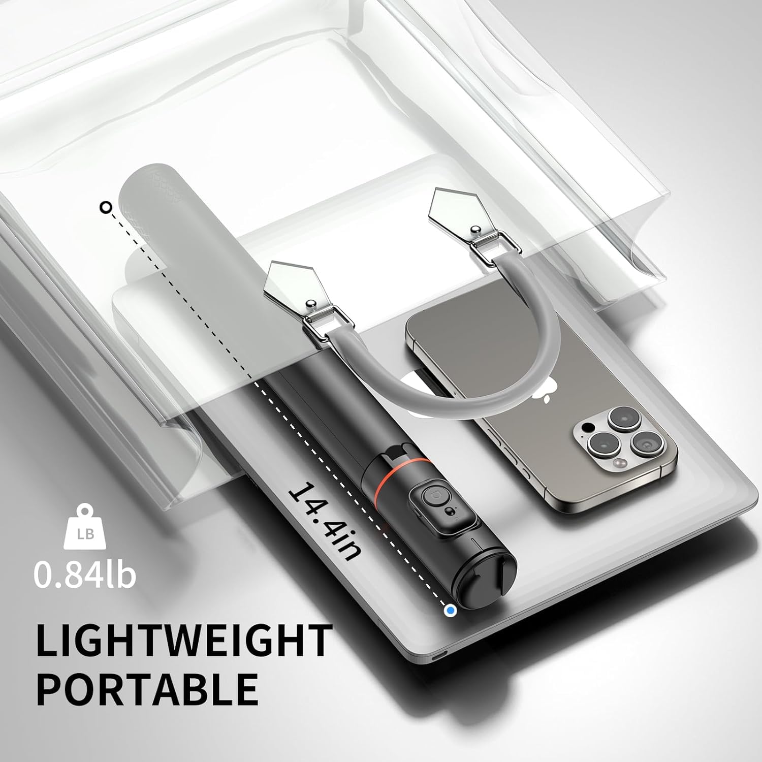 - đĽ ăSeamless Remote Shutter ControlăEquipped with a detachable Bluetooth remote shutter, effortlessly capture high-quality photos or videos from a distance. The remote trigger cleverly fits into the selfie stick tripod legs, ensuring security. Compatible with both iOS and Android systems for seamless operation.